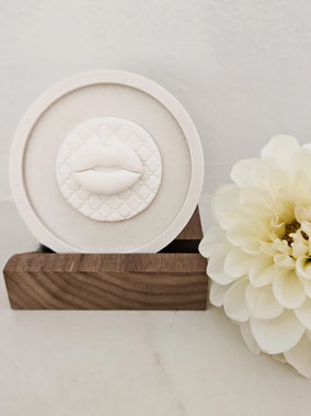 Handgemaakte tegeltjes van jesmonite en polymeerklei.