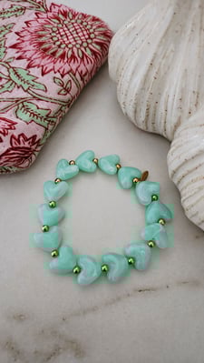 Gemarmerde hartjes met goudkleurige stainless steel kraaltjes, voor welke kleur ga jij? een armband die je makkelijk combineert met je andere sieraden en bij iedere outfit past.