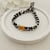 Een handgemaakte armband met unieke bedeltjes van stainless steel .